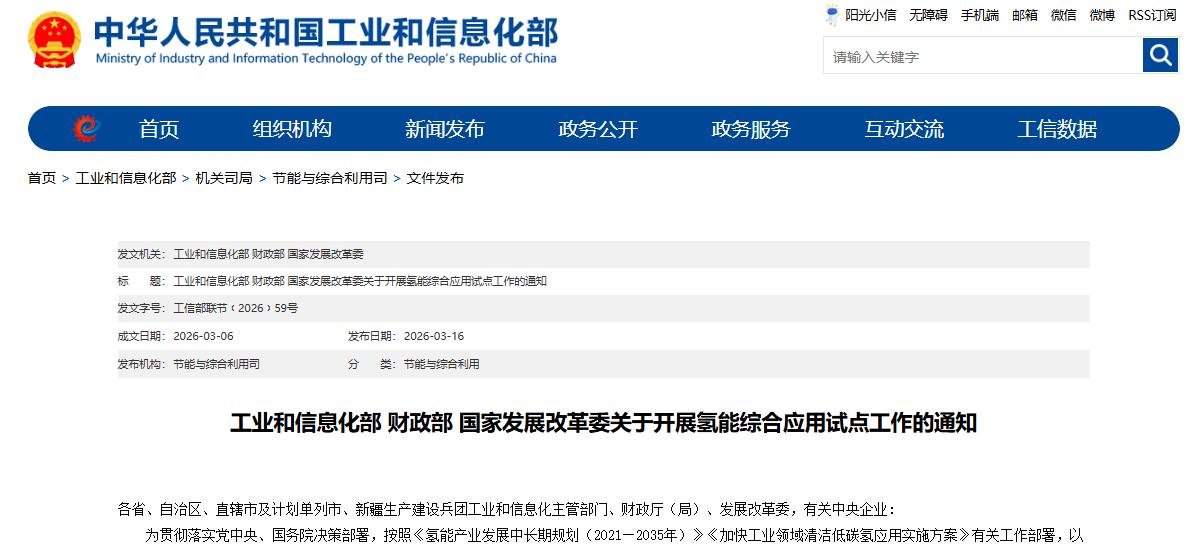 3月16日,工业和信息化部、财政部、国家发展改革委发布关于开展氢能综合应用试点工作的通知。