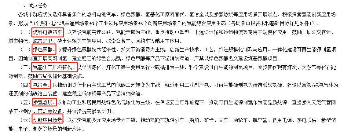 通知提出,以城市群试点为核心,按应用牵引、场景驱动、因地制宜、协同联动原则,通过“揭榜挂帅”遴选试点城市群,推动氢能应用从燃料电池汽车拓展至交通、工业多元领域,攻克技术堵点,形成可复制的商业应用模式,最终实现氢能制储输用全产业链一体化融通发展,构建综合应用体系与良好产业生态。